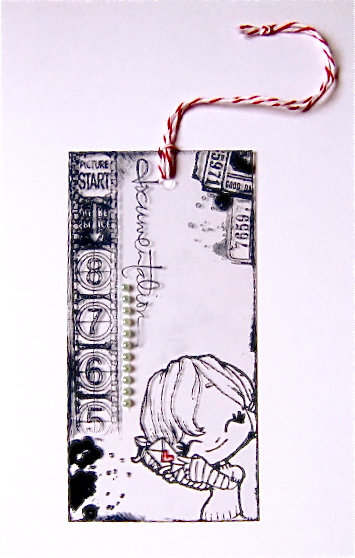 per il retro invece ho usato uno scampolo di carta con delle nuvole e ci ho timbrato la scritta dello stesso set! {scusate non ricordo la marca :( della carta! }